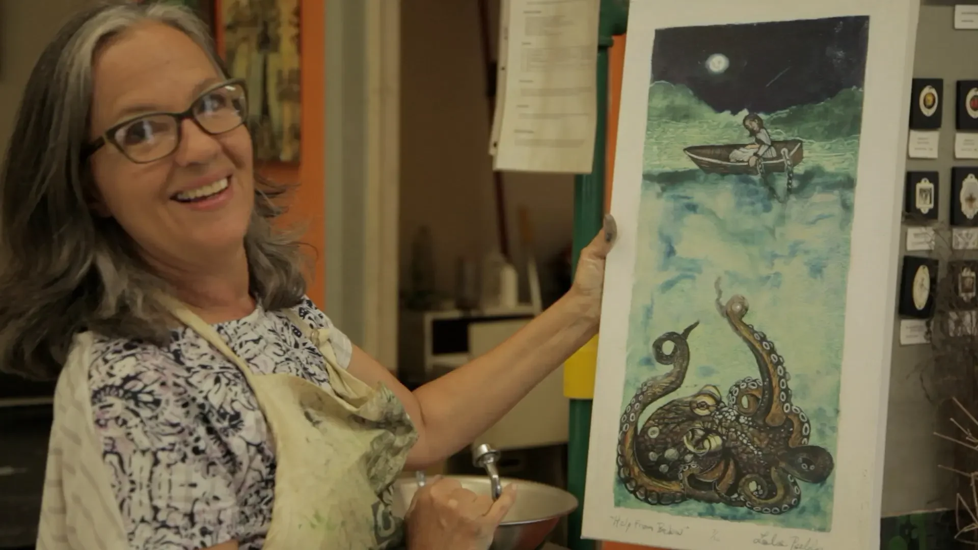 I came to printmaking in kind of a roundabout way. I got my degree in drawing and painting, and then I had a family, so I got a master's in art education because that was the practical thing to do. After my first year of teaching middle school, a friend of mine decided, "I hate printmaking! I never want to use these materials ever again. Do you want all this linoleum and ink for your students?" And I said, "Why, yes!"