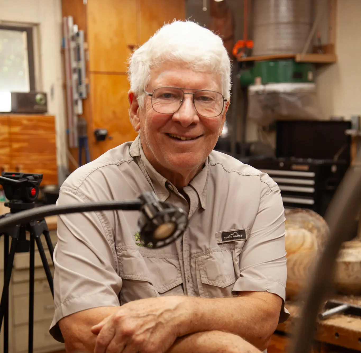 At about that time I learned about the work of the Molthrops, another carpentry family. They're a three-generation family of architects and woodworkers based at Georgia Tech, and they helped popularize woodturning from an industrial endeavor into an art media. I bought a piece from Philip Molthrop, a very expensive piece, and I wrote him to say "hey, you know, I've admired your work and I've gotten into wood turning because of what I see y'all doing." It turned out that Phil and I had gone to rival high schools, graduated in the same year, and that we had some mutual friends.